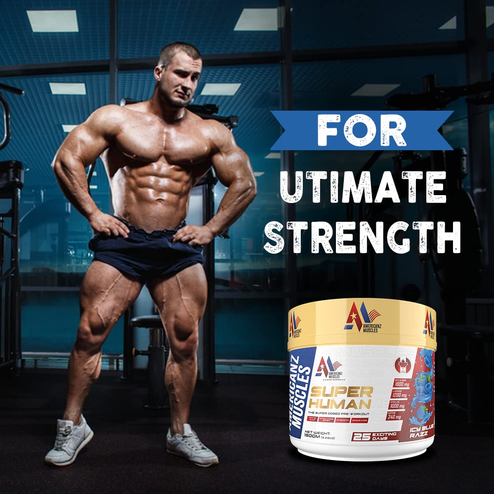 Americanz Muscles Super Human Pre-Workout Train harder. Focus deeper. Perform like a Super Human.