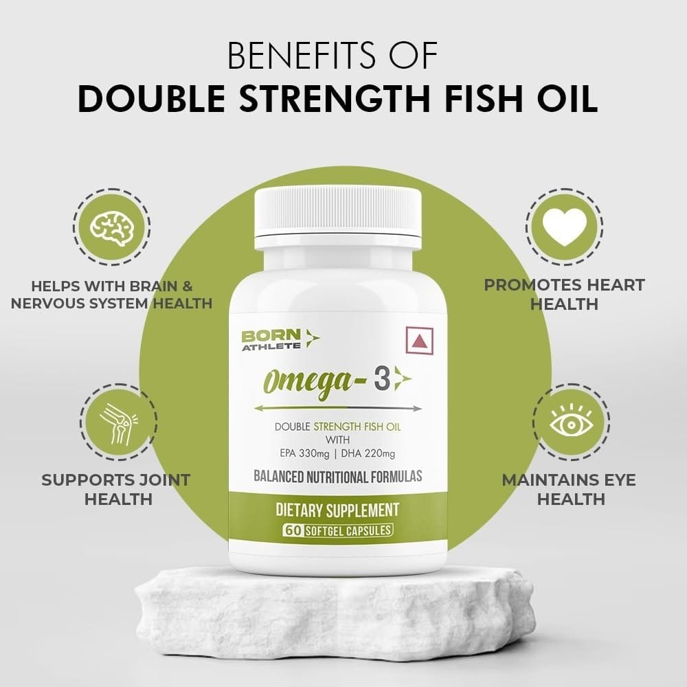 Born Athlete Omega 3 Fish Oil – Double Strength with EPA 330mg & DHA 220mg | Supports Heart Health, Joint Flexibility & Reduces Inflammation
