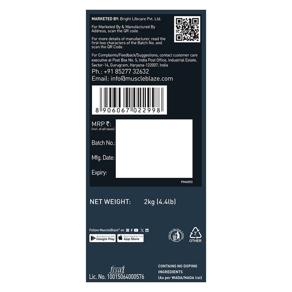 Founded in 2012, MuscleBlaze has become synonymous with product quality, authenticity and cutting-edge performance at the best price. This is possible due to their stringent adherence to source the purest ingredients and uses quality processes –all this to guarantee authentic products, every time.