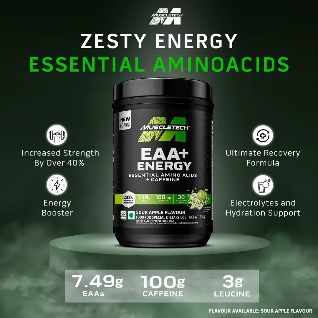 Muscletech™ EAA+ Energy was formulated based on research conducted at a leading university. The formula delivers a unique ratio of essential amino acids (EAAs) to support muscle protein synthesis, strength development and recovery. Additionally, each serving provides key electrolytes to support hydration.
